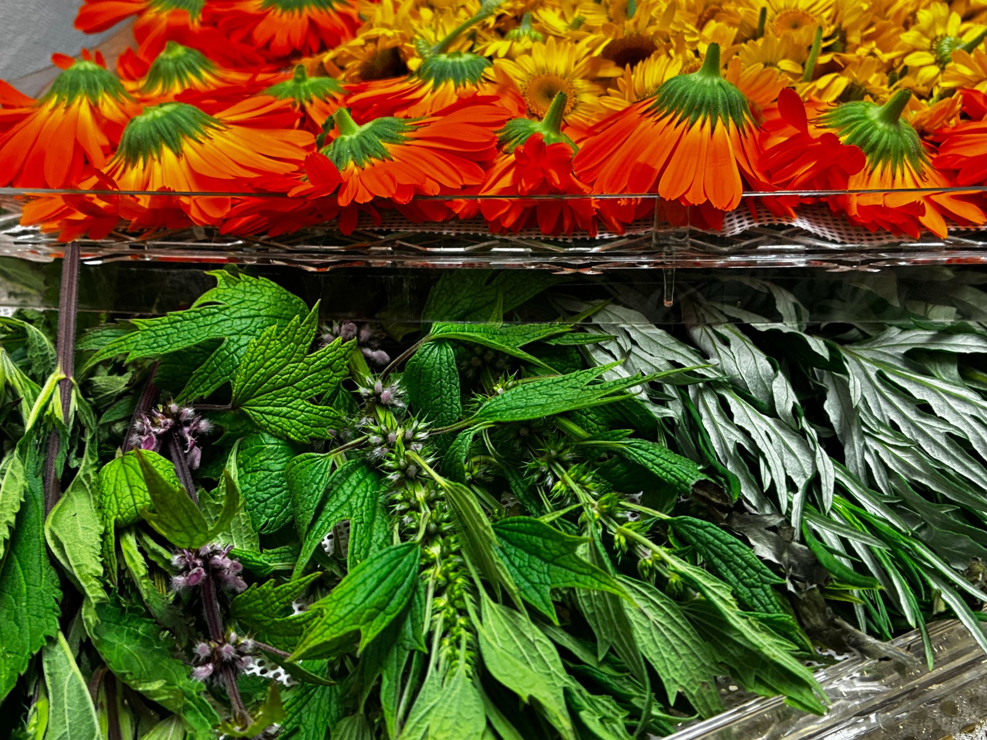 We use a slow, low-temperature method to retain colour, fragrance, and potency. Then each batch is cured before being carefully packaged. This is the foundation for all our apothecary offerings, oils, tinctures, teas, and more.