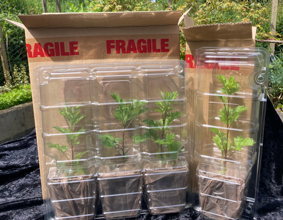 Our packaging is eco-friendly and chosen with the environment in mind. We use biodegradable, recyclable, or reused materials wherever possible. All our plants are sent in clampacks, designed to provide maximum protection and ventilation during transit. These clampacks are made from recycled PET material with at least 90% recycled content and are fully recyclable. Our plant packaging ensures that your new green companions are protected during their journey to you, while minimizing waste and reducing our environmental impact.