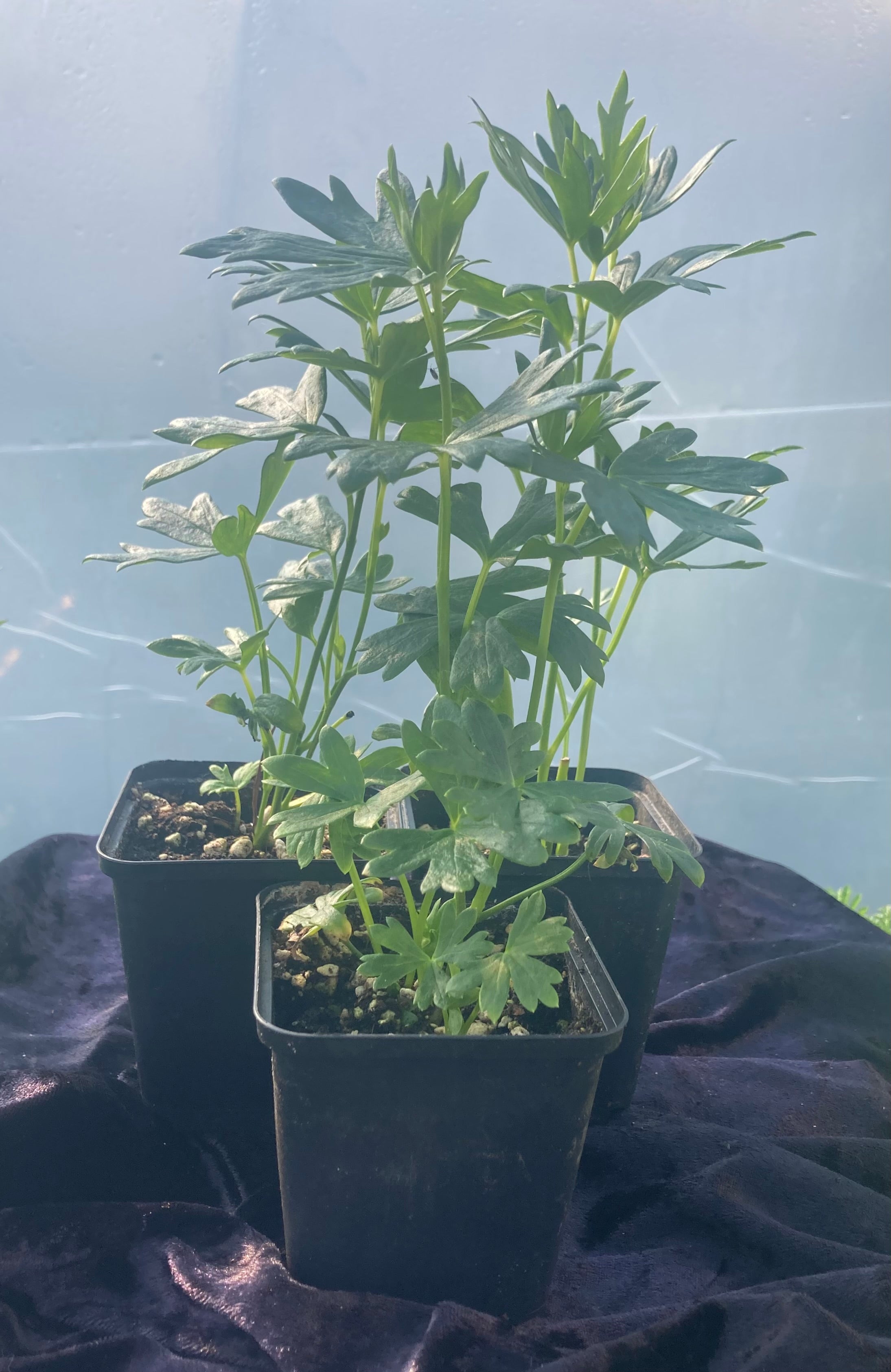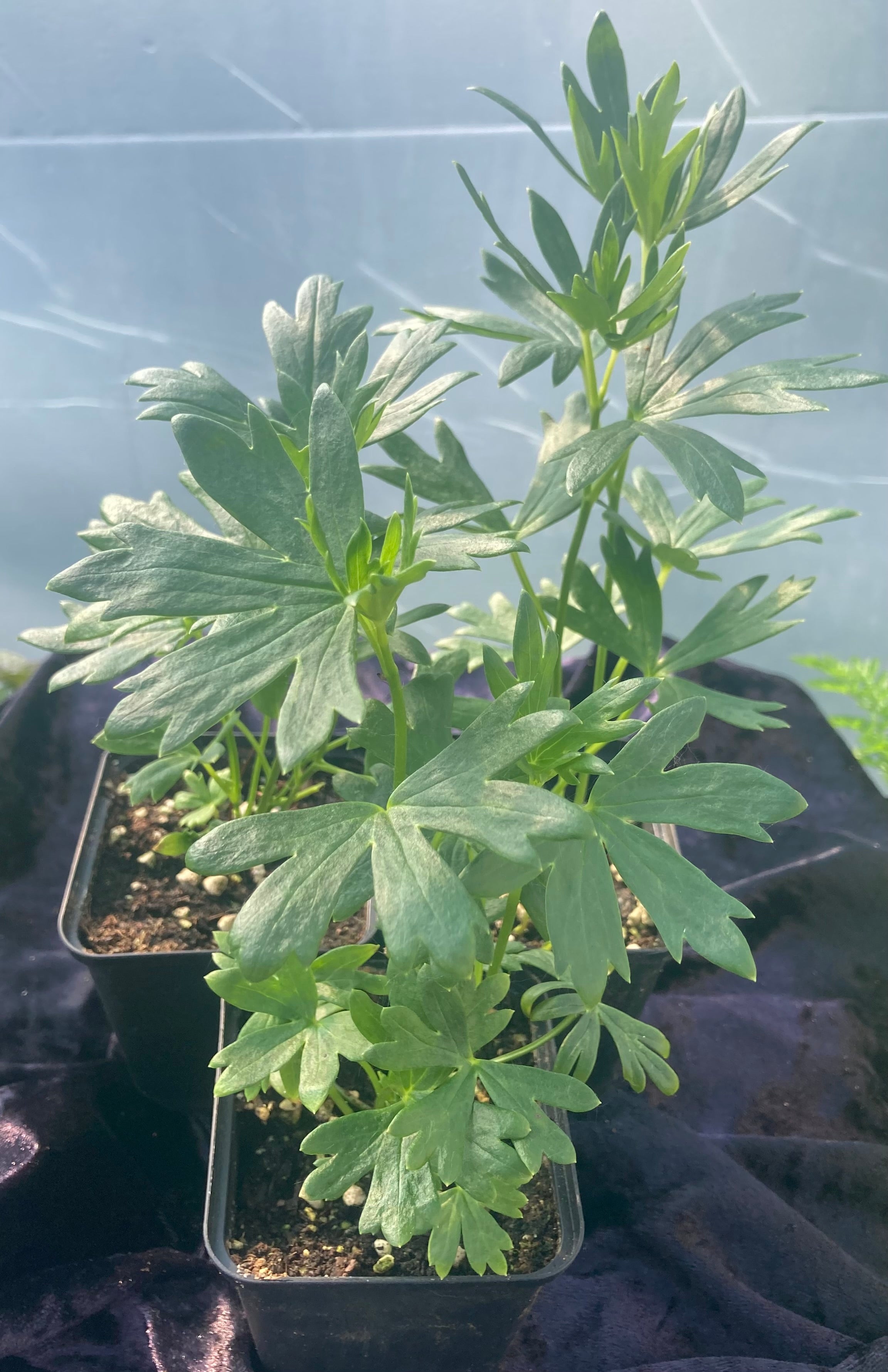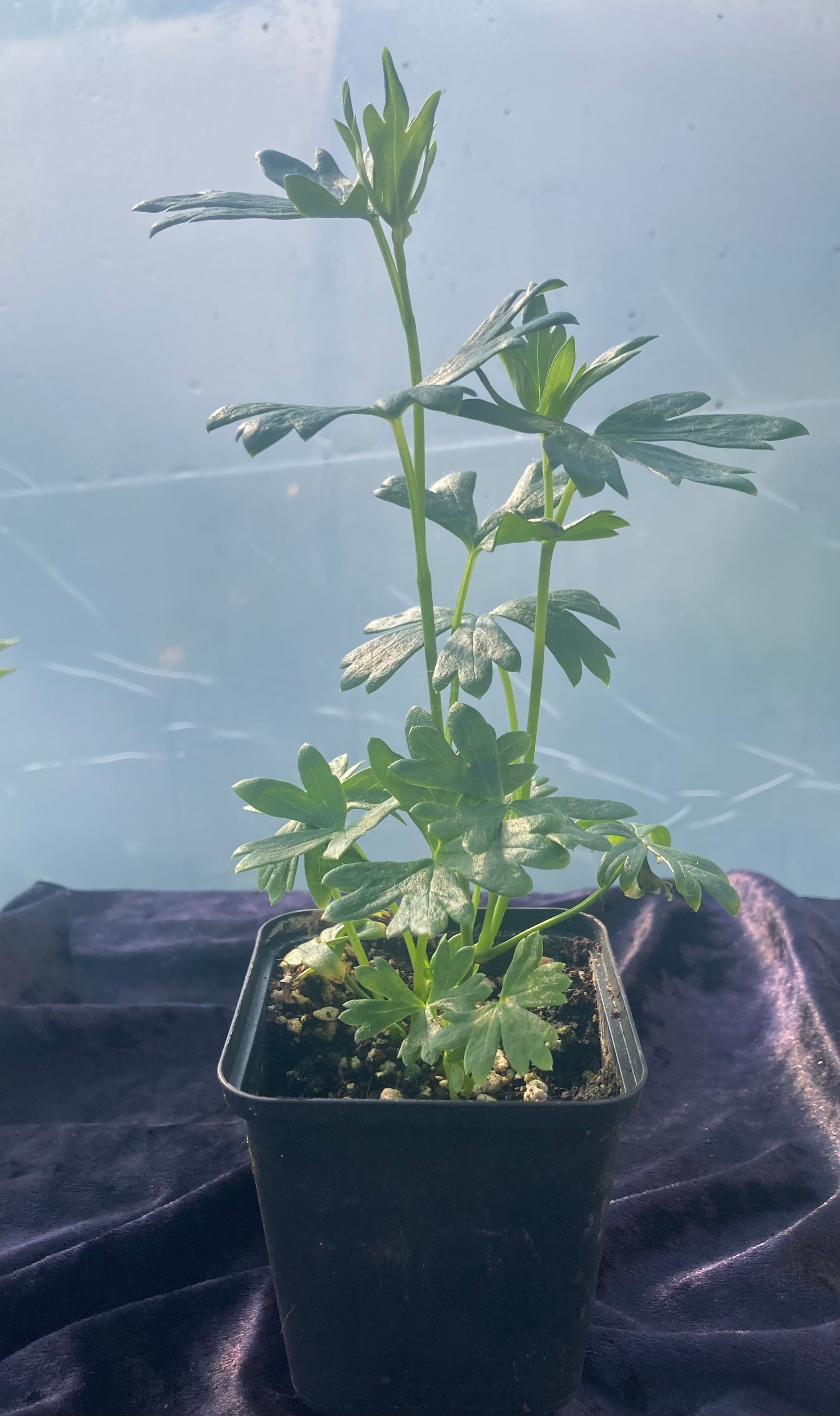 Monkshood – Aconitum napellus known in Welsh as “Cwcwll y Mynach” organically grown in an 8 cm pot. A striking, long-lived herbaceous perennial that can reach up to 1.5 m (5 ft) tall. Known for its tall spires of hooded blue-violet flowers and deeply lobed, glossy green foliage. Blooms appear from July to September, bringing dramatic vertical interest to shady borders and woodland gardens.
