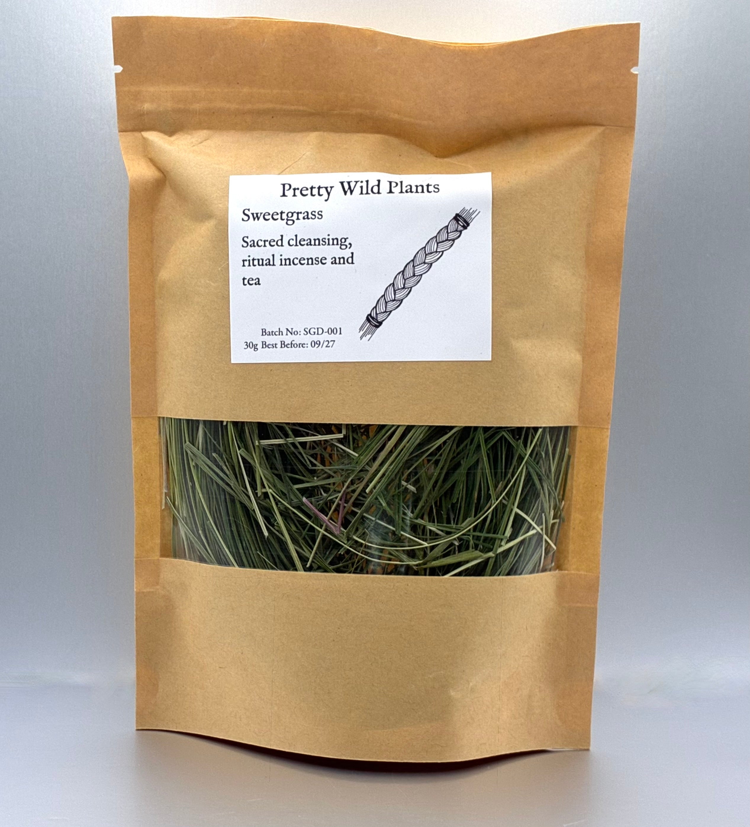 Sweetgrass is a sacred aromatic grass with long, glossy green blades that release a warm, sweet, vanilla like fragrance when dried. Revered in both spiritual and folk traditions, it is burned to purify, attract blessings, and call in harmony and good spirits. Its gentle smoke carries prayers and intentions skyward, leaving a calm, uplifting atmosphere. At Pretty Wild Plants, our Sweetgrass is grown at home here in Pembrokeshire, harvested by hand and dried slowly to preserve its soft scent and vibrant energy.